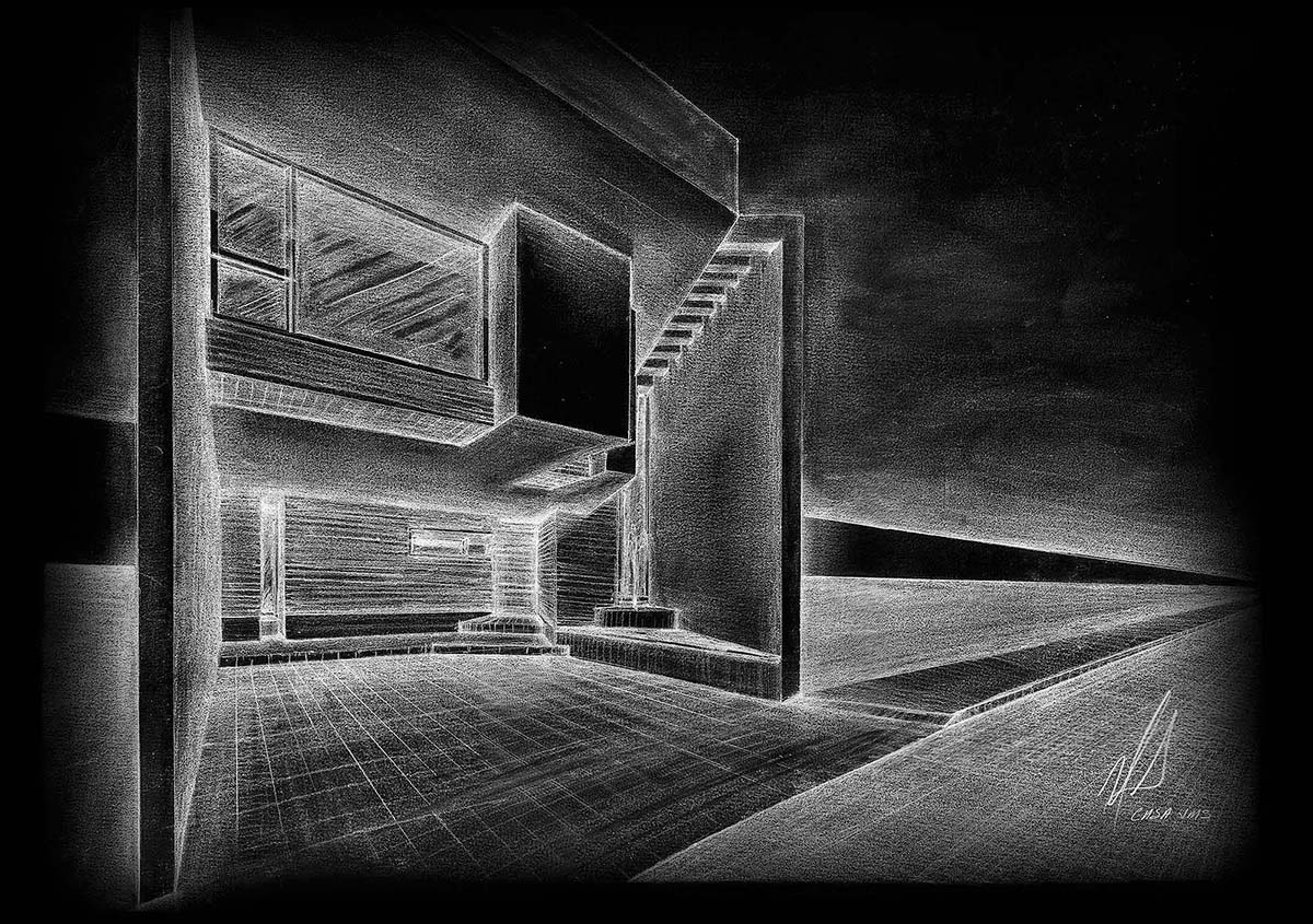 El proyecto se desarrolla en un terreno irregular de apenas 8ms de fachada publica (fachada norte) y abre a 17.60 ms al fondo; se ubica al noreste de la ciudad de León. La distribución de esta casa de 333.30 m2 se organiza en 2 niveles a partir de un jardín orientado al sureste diseñado como principal fuente de luz natural. La sala cuenta con doble altura abierta al comedor y con vista al jardín, al igual que la cocina y la terraza se integran por medio de canceles que unifican los espacios dando la sensación de apertura y enorme amplitud. El estudio, un tanto más privado incorpora baño completo y también abre al jardín. Tres dormitorios con vestidor y baño cada uno se ubican en el segundo nivel. Las fachadas son enmarcadas con muros de 30 cm; el juego de texturas y la volumetría simple generan una sensación de mayor tamaño. La luz natural inunda la escalera y la sala a través de un enorme ventanal y pérgolas que se introducen y recorren estos espacios lo que permite que el juego de la luz produzca tramas siempre cambiantes y celebra los movimientos del sol a lo largo del día y del año.