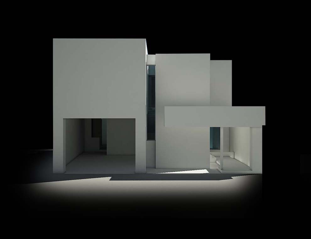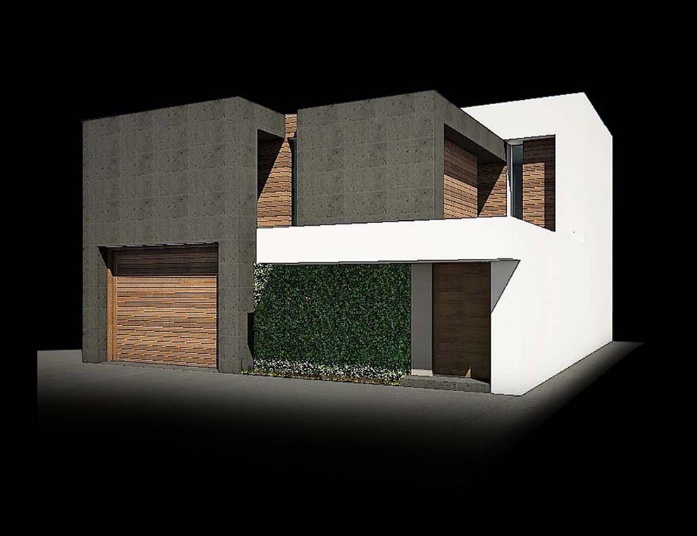 En esta ciudad de Santa Bárbara el clima es en gran parte del año caluroso (30° a 36° c). La propuesta se origina a partir de un juego de volúmenes que abren al sureste y solo permiten un mesurado paso de luz del oeste. El vestíbulo principal a doble altura brinda amplitud y luz a través de pérgolas a lo largo del pasillo que distribuye a las recamaras y disfruta de la vista a un espejo de agua que se integra a la sala y comedor. El espacio social es fluido, unitario y se abre, al igual que la cocina, al jardín posterior (este). Un patio da iluminación a la cochera, servicios y cocina. En la planta superior encontramos tres recamaras, un vestidor y dos baños.
