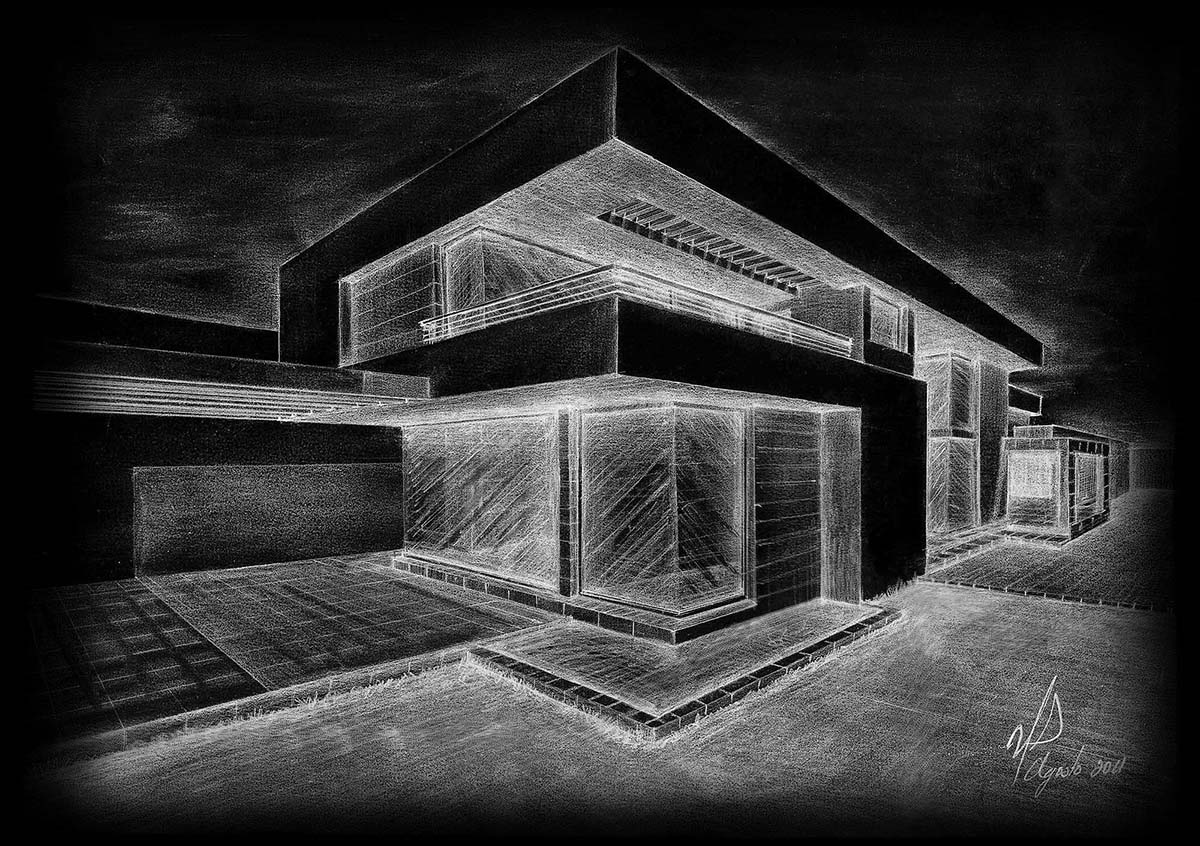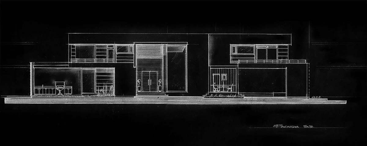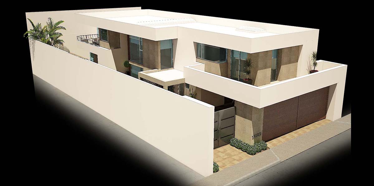Casa habitación distribuida en dos plantas. El planteamiento abre a un patio-jardín concebido como una transición hacia un tranquilo mundo privado, entorno Ideal que que refleja la personalidad de sus propietarios. El patio incluye plantas tradicionales, terrazas con pérgolas forradas en cantera, madera y el sonido del agua en movimiento. El juego de líneas rectas son las protagonistas en el diseño con una fachada donde se crea un juego de volúmenes en diferentes planos. En planta baja encontramos las principales zonas de uso común, la biblioteca y los servicios. Se accede a un vestíbulo central que divide la casa en dos. El vestíbulo es un espacio que brinda luz; la luz natural fluye mediante pérgolas y penetran en las áreas de estar y las escaleras. Se propone un jardín interior tomando como modelo los jardines clásicos japoneses. Un puente flotante conecta la planta alta donde nos encontramos con 4 dormitorios, 4 vestidores y 3 baños. Tanto en planta baja como en planta alta los grandes paños y las pantallas con vidrio plegable crea una mirada de posibilidades en la calidad de la luz y permiten la descomposición de la barrera entre el espacio exterior e interior.